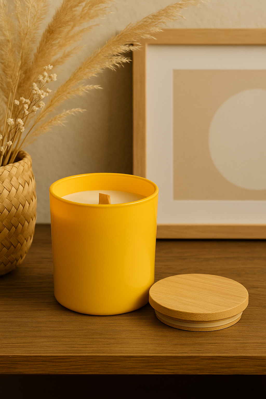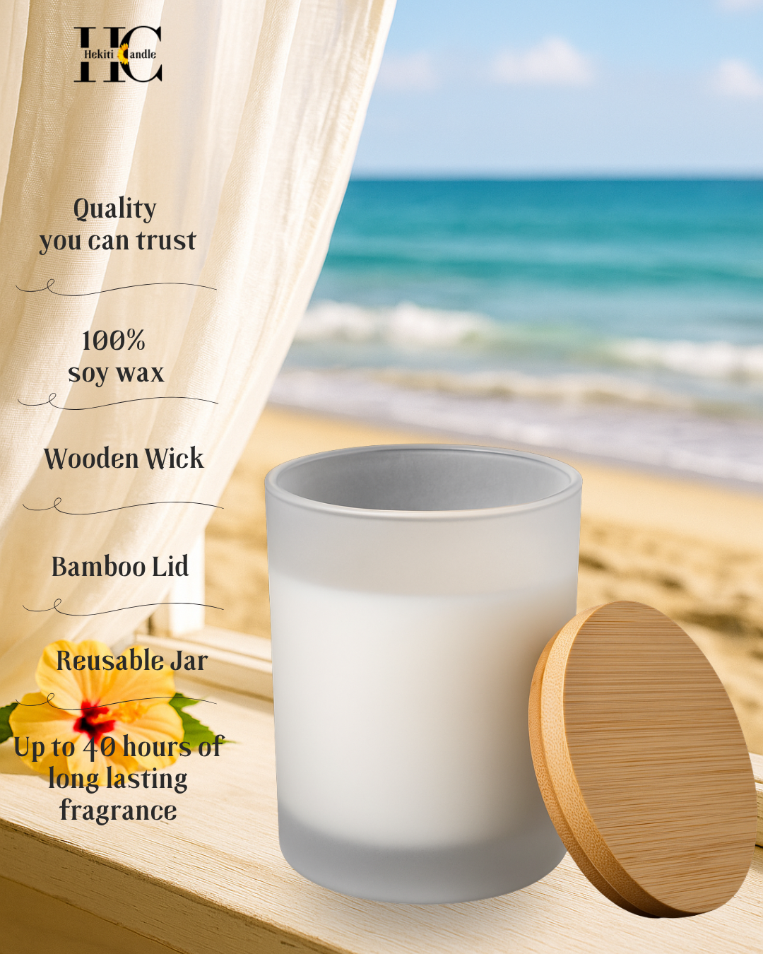 • Hand-poured soy candle with a natural wooden wick